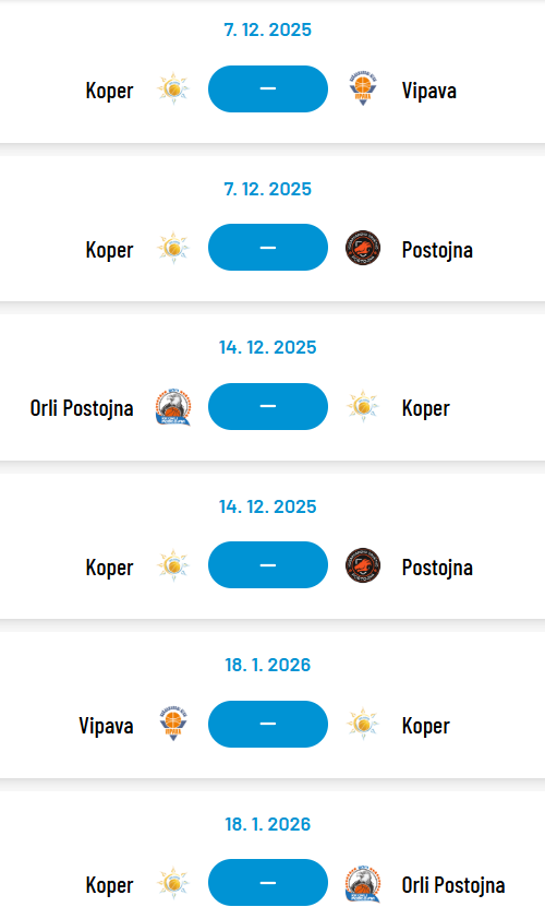• OŠ Koper – četrtek, od 13.45 do 14.30 v mali telovadnici (1. – 4. razred)